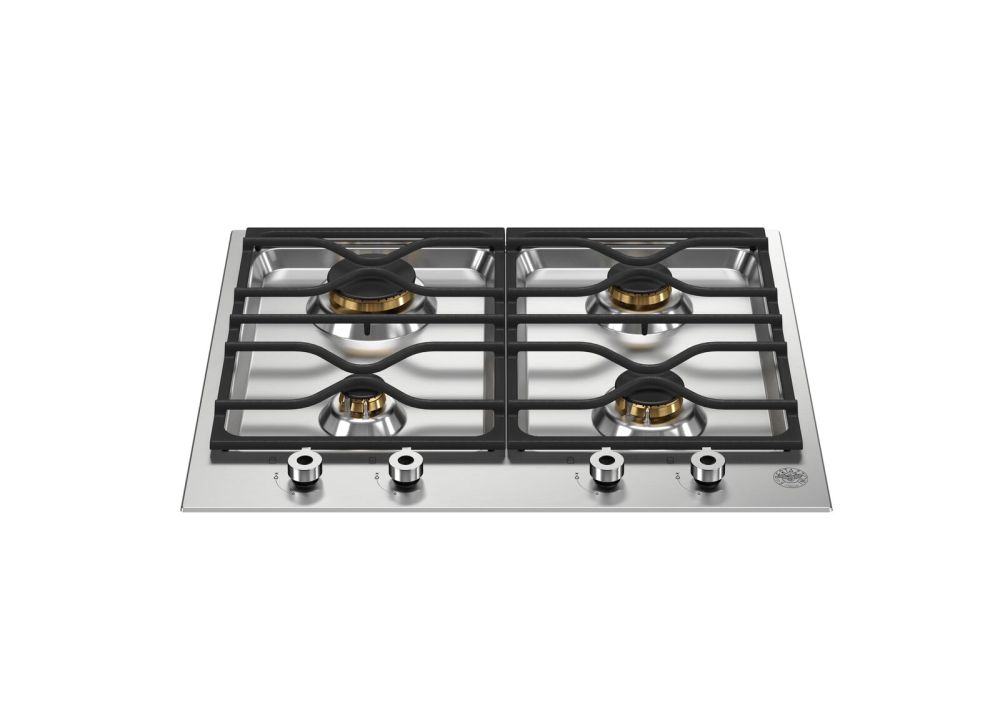 Двухсегментная варочная поверхность Bertazzoni серии Professional шириной 60 см выполнена из нержавеющей стали, оснащена четырьмя латунными конфорками. Благодаря эргономичным металлическим рукояткам управления процесс приготовления становится еще проще и точнее. Чугунная решётка прочная и безопасная.
