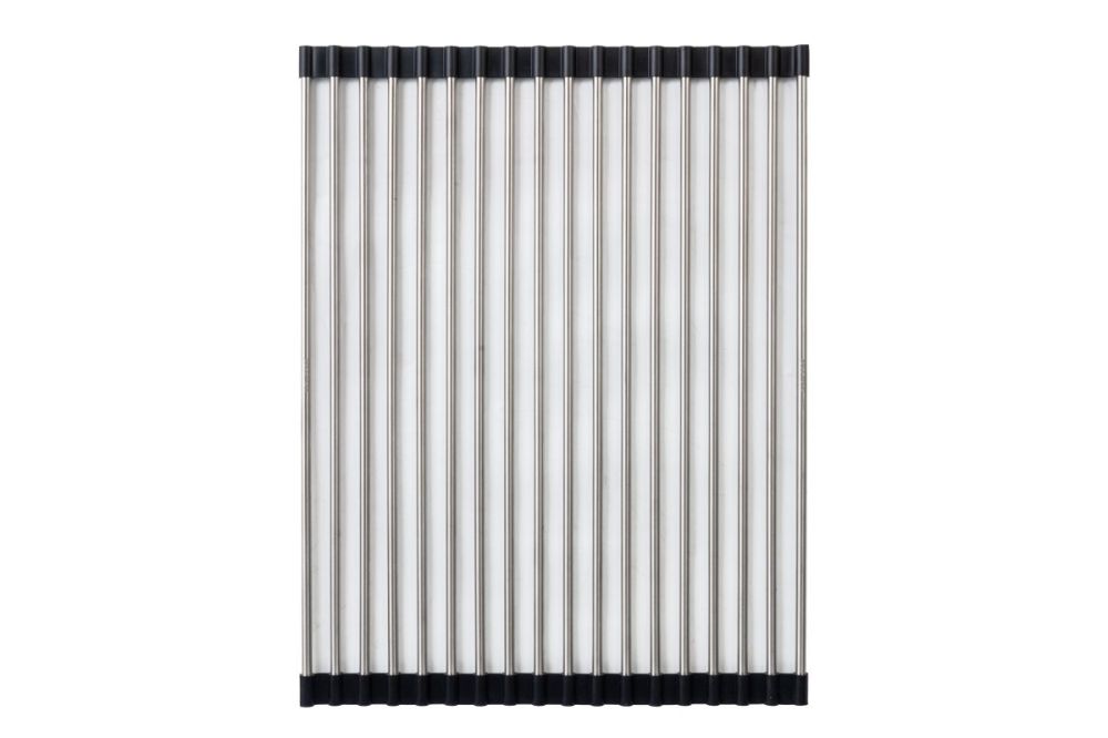 Благодаря двусторонним силиконовым наконечникам, ролл-мат защищает поверхность и может быть размещен на столешнице, крыле мойки или в специальных направляющих чаши кухонной мойки.