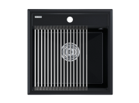 Материал мойки устойчив к сколам, царапинам и деформациям. На горизонтальных гранях чаши мойки предусмотрены специальные выступы-ступеньки, которые позволяют использовать такие аксессуары, как ролл-маты, доски, коландеры и пр. для создания дополнительной рабочей поверхности на кухне.