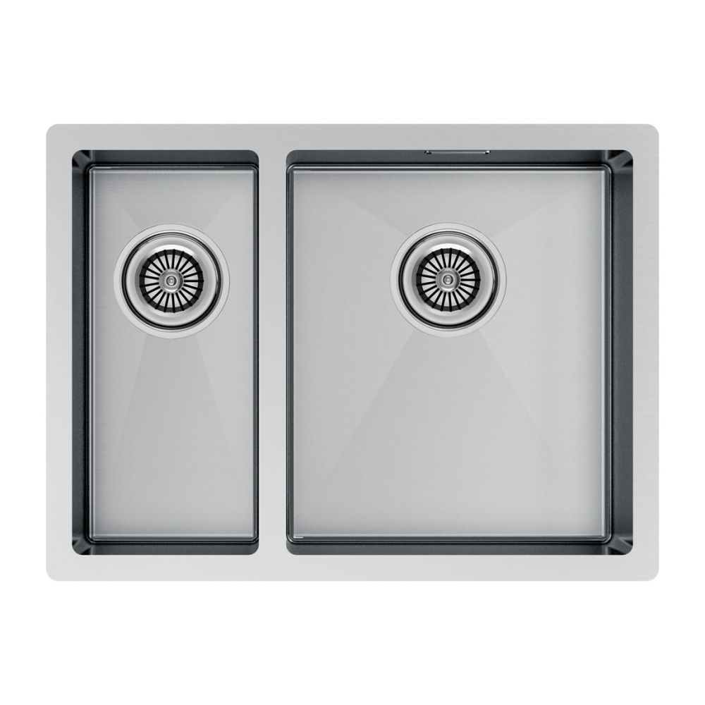 Габариты мойки составляют 590х440 мм, а дополнительная чаша шириной 180 мм расширяет функционал. Возможен подстольный, накладной монтаж или монтаж вровень со столешницей.