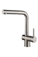 Смеситель для кухни Dosse с вытяжным шлангом изготовлен из высококачественной и экологически чистой нержавеющей стали AISI 304, легированной никелем, марганцем, медью и хромом, что обеспечивает ей повышенную прочность и устойчивость в коррозионных средах.