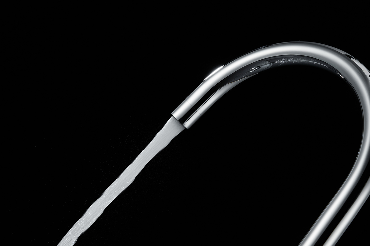 Высокий изогнутый излив, вращающийся на 360 градусов, обеспечивает легкое мытьё и наполнение высокой посуды и ваз.